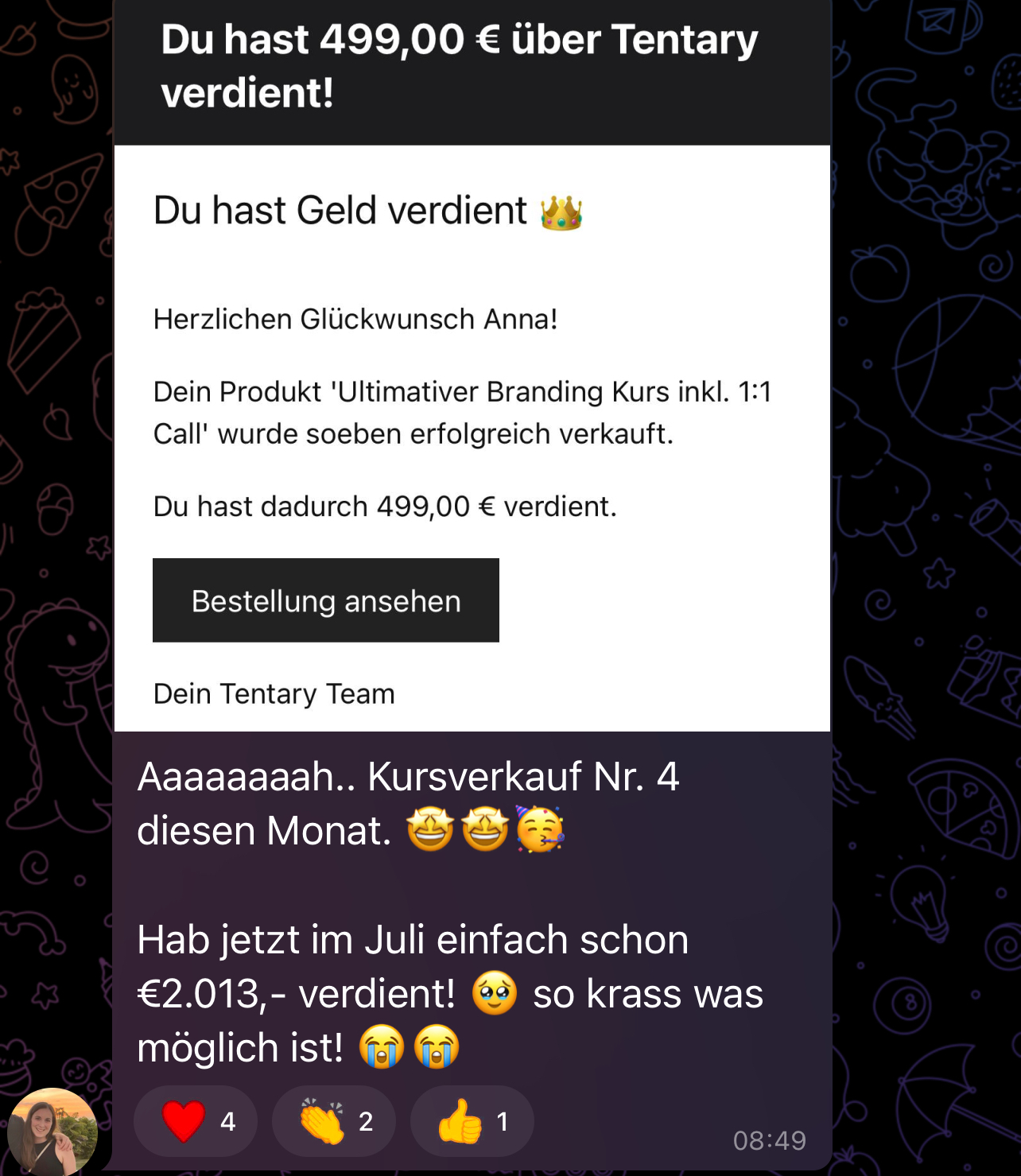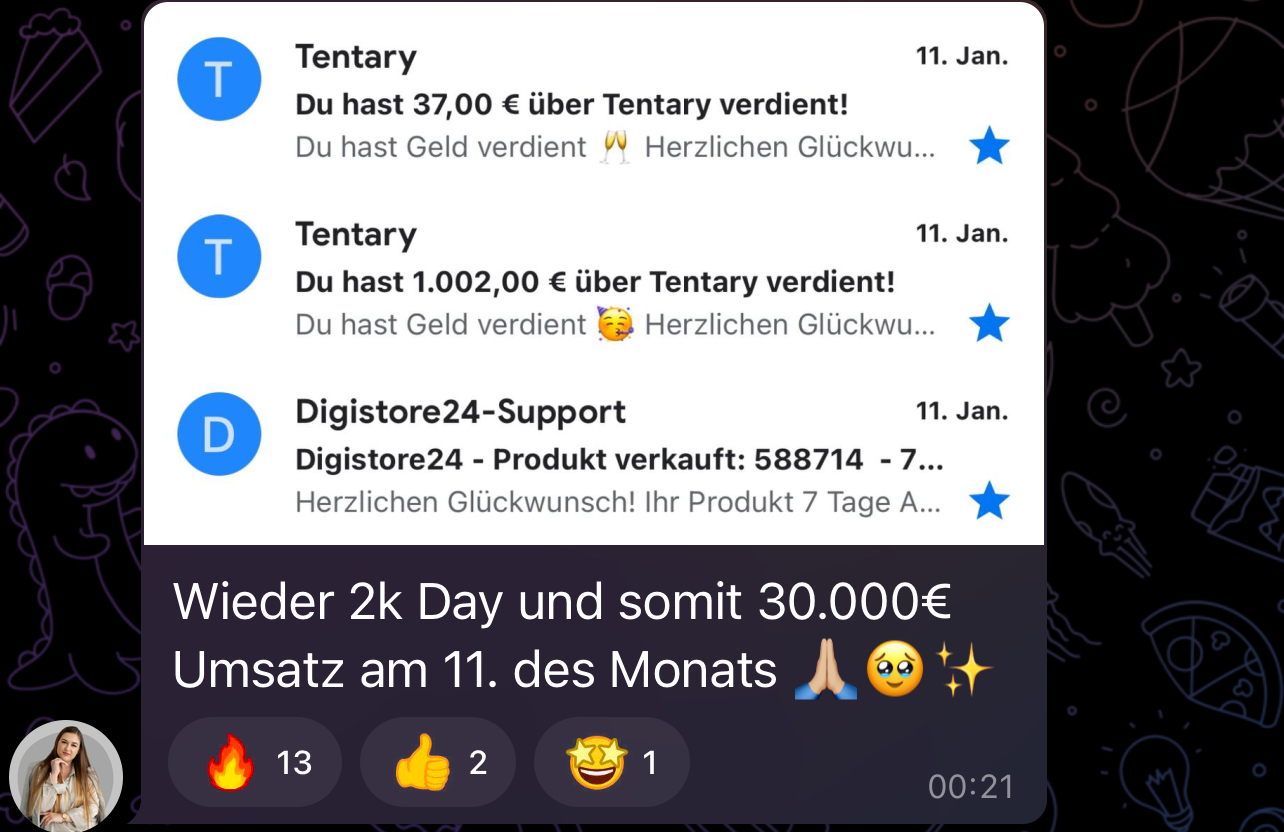 Dann hörte ich Anfang 2024 von digitalen Produkten. Ich war direkt total gehyped und habe nicht lange gezögert, bis ich mir das erste digitale Produkt mit Weiterverkaufsrechten geholt und innerhalb von 14 Tagen meinen ersten Verkauf gemacht habe.